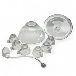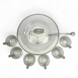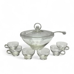 | Omschrijving | Een 20e eeuwse glazen bowlset met zes kopjes, ontwerp A.D. Copier voor glasfabriek Leerdam, ca. 1950 |