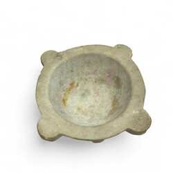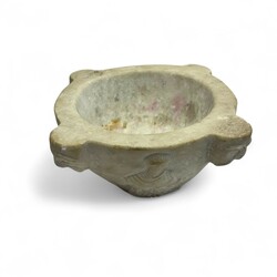 | Omschrijving | Een 19e of 20e eeuwse Italiaanse marmeren vijzel, gedecoreerd met figuren. |