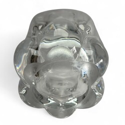 | Omschrijving | Een zware blank glazen designvaas met gelobte vlakken. Ontwerp van Antonio en Guido Bon voor glafabriek Val St Lambert. ca 1955. |