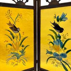 | Omschrijving | Een 20e eeuws art nouveau stijl miniatuur kamerscherm, met beschilderde glazen ramen. |