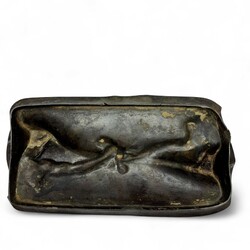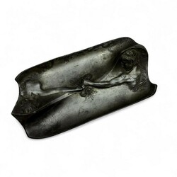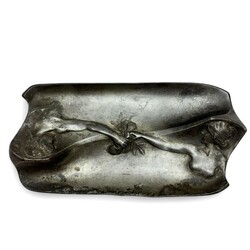 | Omschrijving | Een vroeg 20e eeuwse tinnen vide poche, art nouveau stijl, met voorstelling van een man en een vrouw die naar elkaar reiken. Ongemerkt, vermoedelijk Duits of Frans, ca. 1910 |