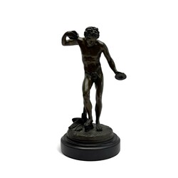 Een 20e eeuws bronzen sculptuur op marmeren sokkel