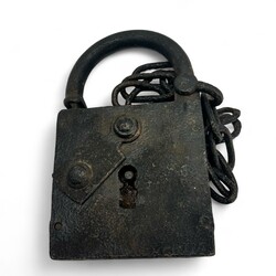 Lot van drie antieke sloten, waaronder twee hangsloten.