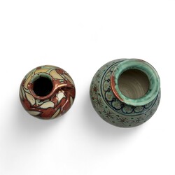 | Omschrijving | Een Mobach oorkan en een bolvaas voorzien van lusterglazuur. Modelnummer 248. Gemerk voor Klaas Mobach KAMO , Utrecht. ca 1930. |