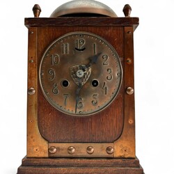 | Kavel | 1355. Een messing met hout Arts & Crafts tafelklok. |