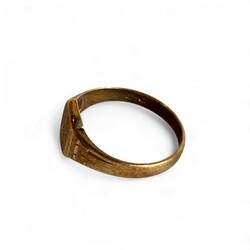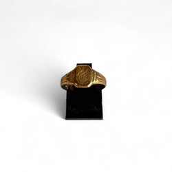 | Omschrijving | Een antieke 19e eeuwse 14 karaats (585/1000) geelgouden ring, gegraveerd met monogram. Aan de binnenzijde gemerkt met eikenblaadje en meesterteken ‘A.’. |