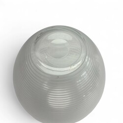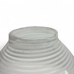 | Omschrijving | Een blank glazen conische vaas met dunnen witte banen. In de stijl van Carlo Scarpa, Murano |