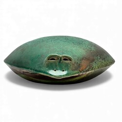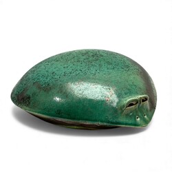 | Omschrijving | Een 20e eeuws groen keramieken sculptuur van een kikker, gemonogrammeerd Jan Saarloos (’s Gravendeel, 1948). |