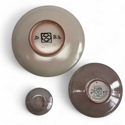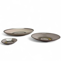 | Omschrijving | Drie platelen schaaltjes met gekleurd gedraaid motief. Ontwerp van Jan van Ham Gemerkt voor de drie Paddestoelen. |