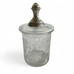 | Kavel | 1466. Kristallen lepelvaasje met lepels en 19e eeuws dekselpotje met zilveren knop |