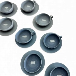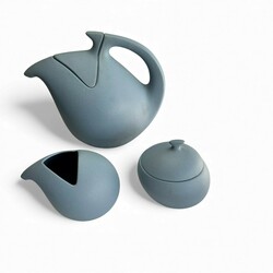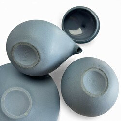 | Omschrijving | Een 20e eeuws blauw keramieken theeserviesje, bestaande uit theepot, melkkan, suikerpot, en acht kop en schotels. Enkele objecten gesigneerd ‘LK94’ = Liesbeth Kamp (Termunterzijl,1962). |