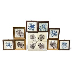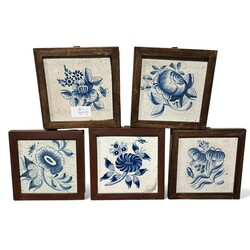 | Omschrijving | Lot antieke tegels: een vierpas tegeltableau met 18e eeuwse mangaan bloemtegels, drie soortgelijke tegels in lijstjes en vijf 18e eeuwse Friese blauw-witte bloemtegels. |