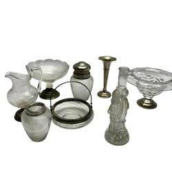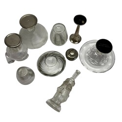 | Omschrijving | Lot divers, waaronder een Fries draadglazen melkkan, bonbonniere, kandijpot, theebusje en lepelvaasje, allen met metalen montuur. Met daarbij een 20e eeuwse kristallen bonbonniere op tweede gehalte (835/1000) zilveren voet, een tweede gehalte (835/1000) zilveren orchideeënvaasje en een Legras persglazen vaasje met Pierrot en Colombine. |