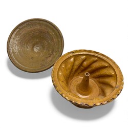 | Omschrijving | Lot divers aardewerk: een Keuls aardewerken kruik en snavelkannetje, een aardewerken tullband vorm, een Fries aardewerken melkkom met ringeloor techniek en twee Fries aardewerken schaaltjes |