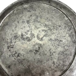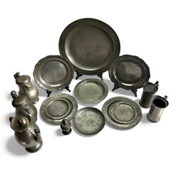 | Omschrijving | Lot divers tin, waaronder een grote 20e eeuwse schotel, gemerkt ‘IM’, twee kleine antieke bordjes, gemerkt met engel en initialen ‘J.M.&S’, een Empire koffiekan met houten knop, rieten greep, gemerkt met engel, een tinnen kruik gemerkt met roos & initialen ‘KD’, vermoedelijk Luiks, een strooibus,, twee maatkannen, waaronder een vroeg 19e eeuwse, gemerkt Leclerc Humbert, Lille, een kommetje, gemerkt ‘Engli Blockzinn Infino’, twee 18e eeuwse borden gemerkt ‘Jan Gardenier’, Dordrecht etc. etc. |