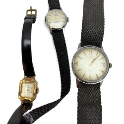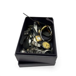 Lot diverse horloges in doosje, waaronder jaren ‘50 of ‘60 exemplaren