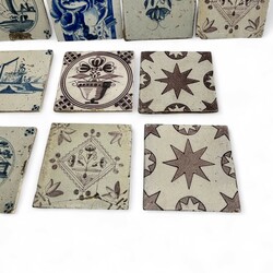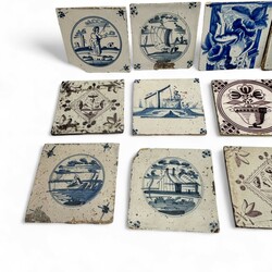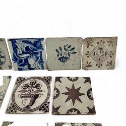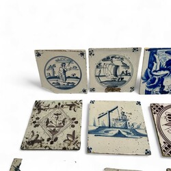 | Omschrijving | Lot diverse 18e en 19e eeuwse tegels, blauw-wit en mangaan, diverse voorstellingen |