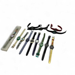 | Omschrijving | Lot met Swatch horloges, heren modellen. Diverse jaren en uitvoeringen, oa Olympische spelen Atlanta 1996. Werking onbekend. |