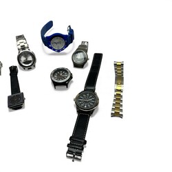 | Omschrijving | Een lot met diverse polshorloges en enkele losse horlogebandjes, oa Swatch en een Festina in doos. |