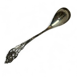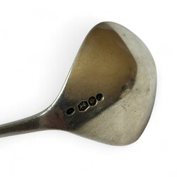 | Omschrijving | Lot divers tweede gehalte (835/1000) zilveren schepwerk, bestaande uit drie jamlepels, één puntfilet, van Kempen 1944, één jugendstil, gedeeltelijk gehamerd, van Kempen 1932, één met opengewerkte steel, gebroeders Huisman, Schoonhoven 1945/1946. Met daarbij drie 20e eeuwse roomlepels, één met steelbekroning van een roos, B2V, onduidelijk gemerkt, één gekruld, fa. Bijkamp, Steenwijk en één jugendstil. |