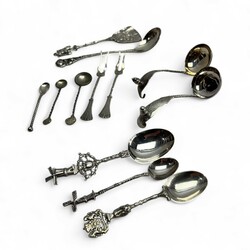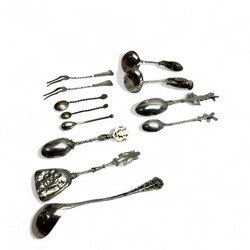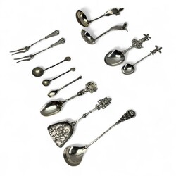 | Omschrijving | Lot divers 19e en 20e eeuws tweede gehalte (835/1000) zilveren schepwerk, o.a. twee roomlepels met getorste steel, gegraveerd en bekroond met een eikel, één gekeurd PS3 = Popke Siebma, werkzaam te Bergum/Groningen tussen 1877 en 1916., mosterdlepeltje, theelepel en suikerschepje bekroond met molen etc. |