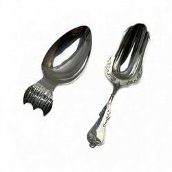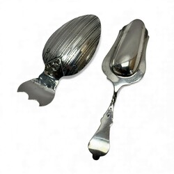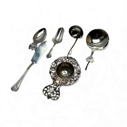 | Omschrijving | Lot divers 19e en 20e eeuws tweede gehalte (835/1000) zilveren schepwerk, bestaande uit een theeduimpje, suikerschepje, twee roomlepels, theezeefje en botermesje met dubbelfilet rand. Diverse meesters, o.a. van Kempen (botermesje), Bijkamp & Co. c.v., Steenwijk (roomlepel) en A. Pluut, Schoonhoven (suikerschepje). |