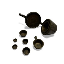 | Omschrijving | Messing sluitgewicht met datum 1709, in totaal tien delen. |