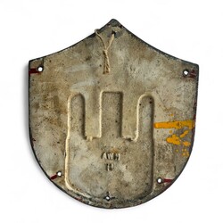 | Omschrijving | Een 20e eeuwse zwaar uitgevoerde metalen plaquette, rood & wit beschilderd met het stadswapen van Hamburg. |