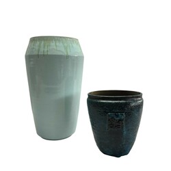 | Omschrijving | Lot van twee 20e eeuwse keramieken vazen, één lichtblauw en één met opschrift '1845'. Beide gemerkt Pieter Groeneveldt (1889 – 1982). |