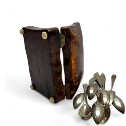 | Omschrijving | Schildpad lepeldoos met 13 zilveren lepels. |