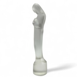 | Omschrijving | Een gesatineerde persglazen sculptuur van de Madonna met kind. Ontwerp van Stef Uiterwaal (1898-1960) voor glasfabriek Leerdam. |