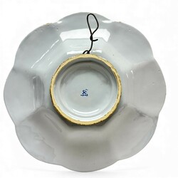 | Omschrijving | Een 20e eeuwse Tichelaar Makkum blauw-wit gedecoreerde plooischotel met 12 schilderingen van stadsgezichten en wintertaferelen in cartouches. |