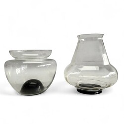 | Omschrijving | Twee glazen vazen op zwarte voeten. Niet gemerkt. Toegeschreven aan W.J. Rozendaal (1899-1971) voor de Kristalunie, Maastricht. Ca 1930. |