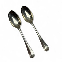 | Omschrijving | Lot van twee antieke 18e eeuwse Fries zilveren lepels, model Haags Lof. Aan de achterzijde gekeurd met meesterteken ‘WD’ = Wiebe Dominicus, zilversmid in Leeuwarden, werkzaam vanaf 1744, overleden in 1759 |