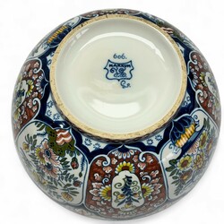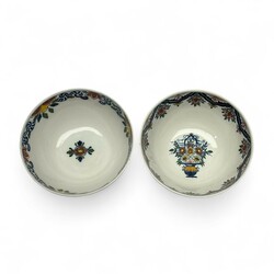 | Omschrijving | Lot van twee 20e eeuwse polychroom gedecoreerde kommen, beide met floraal decor & gemerkt Tichelaar, Makkum. |