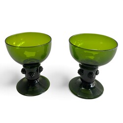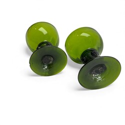 | Omschrijving | Lot van twee antieke 19e eeuwse Duitse groenglazen wijnglazen, zgn. roemers. |