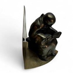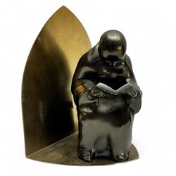 | Omschrijving | Twee jaren '30 art deco metalen boekensteunen, in de vorm van lezende monnikken, op zwarthouten krukjes. Uitvoering Metawa, TIel. |