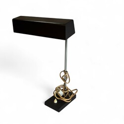 | Omschrijving | Lot van twee vintage bureaulampen met bruine voet en kap, Hala en Dijkstra jaren '70. |