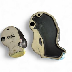 | Conditie | Grote masker met haarlijn van oor tot achterzijde en kleine glazuurchip. Kleine masker in goede staat |