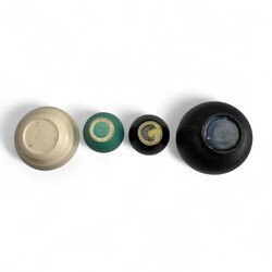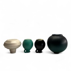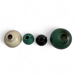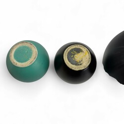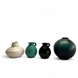| Omschrijving | Twee aardwerken vazen en twee aardwerken oorkannen in verschillende glazuren, zwart, groen en creme kleurig. Ontwerpers oa W.H. van Norden. Eskaf, huizen periode.1 vaas gemerkt |
