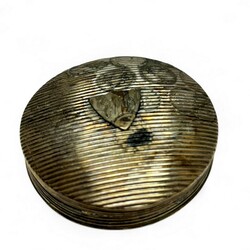 | Omschrijving | Lot van drie 19e en 20e eeuwse tweede gehalte (835/1000) Nederlands zilveren doosjes. Eén lodereindoosje en twee pillen- of pepermuntdoosjes. Eén pillendoosje rond model, geribd, bekroond met schildje met initialen. Gemerkt met lopende leeuw, minervakopje en jaarletter G (1816), tevens met (onduidelijk meesterteken (‘DL’ in ruit onder ster?). Met daarbij een 19e eeuws gecontourneerd vierkant pepermunt- of pillendoosje met filigrain bewerkt op de deksel, keuren sleets. Met daarbij een 20e eeuws tweede gehalte (835/1000) zilveren lodereindoosje, mr. Niekerk, Schoonhoven, jaarletter J (1993). |