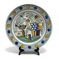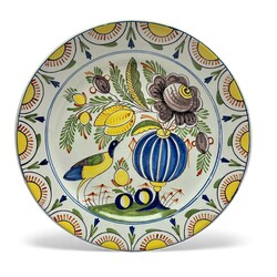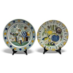 | Omschrijving | Twee polychrome Tichelaar Makkum schotels met traditionele bloem- en vogelmotieven. |