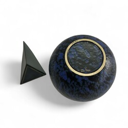 | Omschrijving | Een 20e eeuwse keramieken vaas, bolvormig model, met gespikkeld glazuur. Met daarbij een grijs driehoekig vaasje. Beide ontwerp & uitvoering Dirk Romijn (1946-2017), gedateerd 1985 en 1990, aan de onderzijde gesigneerd. |