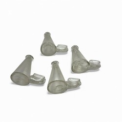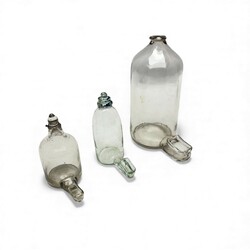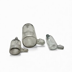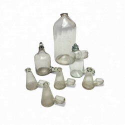| Omschrijving | Lot van zeven antieke handgeblazen vogeldrinkflesjes |
