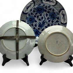 | Omschrijving | Lot van vier Delfts aardewerken borden en schotels, waaronder twee 18e eeuwse borden. |