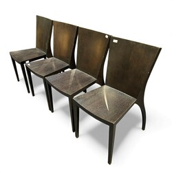 | Omschrijving | Lot van vier zwart essen gefineerde designstoelen, Gunther Lambert, Milano. |