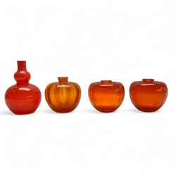 | Kavel | 1252. Vier Leerdam glazen oranje vaasjes. |