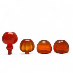 | Omschrijving | Lot van vier glazen oranjevaasjes. Bestaande uit twee bevrijdingsvaasjes 1945, Het Beatrix vaasje 1938, Ontwerp van A.D. Copier.Hierbij het Alexia vaasje, ontwerp van Willem Noyons uit 2005. Uitvoering glasfabriek Leerdam. |