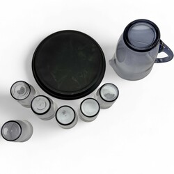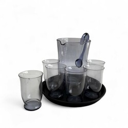 | Omschrijving | Een achtdelig paars glazen waterstel, bestaande uit een schenkkan, zes glazen en een zwart glazen onderschotel. Ontwerp van W. J. Rozendaal (1899-1971) voor Kristalunie, Maastricht. |