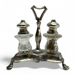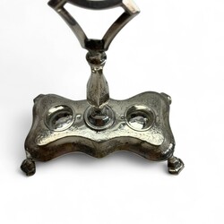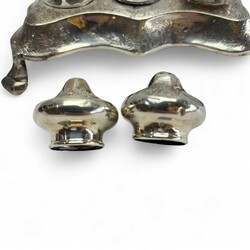 | Omschrijving | Zilveren inktstel met kristallen potjes met zilveren deksel, geplaatst op .... basement. A.H. Ankum, Zaandam, 1862. |